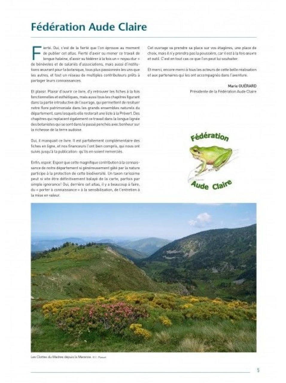 Cet ouvrage est l’aboutissement d’un projet coordonné par la Fédération Aude Claire en partenariat avec le Conservatoire botanique national méditerranéen de Porquerolles (CBNMed), le groupe botanique de la Société d’études scientifiques de l’Aude (SESA) et Les Ateliers de la Nature, pour améliorer et diffuser les connaissances sur le patrimoine floristique du département.