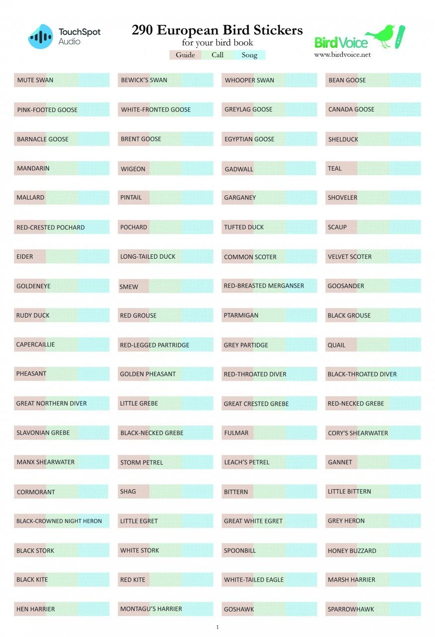 You can use these labels on any book. There are 290 British and European birds audio stickers across the 4 sheets of A5. Each sticker has the species call and song, and Geoff Sample’s expert advice on what to listen out for.