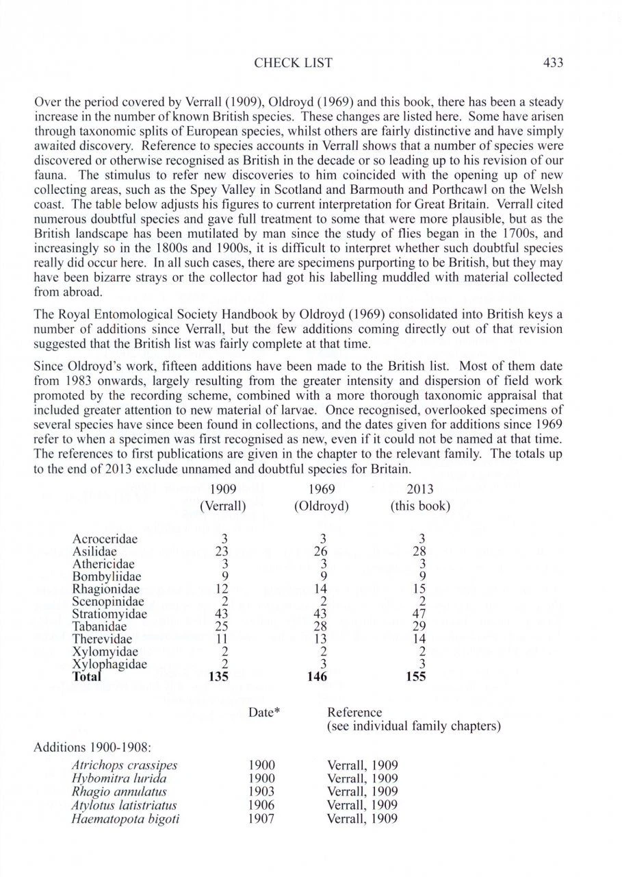 Species status statements have been adjusted or rewritten for some of the Species of Conservation Concern in the light of changing knowledge, most notably among Asilidae (Machimus arthriticus). Bombyliidae (Bombylius discolor, Villa cingulata) Rhagionidae (Chrysopilus laetus), Tabanidae (Atylotus rusticus, Hybomitra solstitialis), Stratiomyidae (Odontomyia angulata), Therevidae (Cliorismia rustica, Pandivirilia melaleuca, Thereva cinifera, T. handlirschi, T. valida).