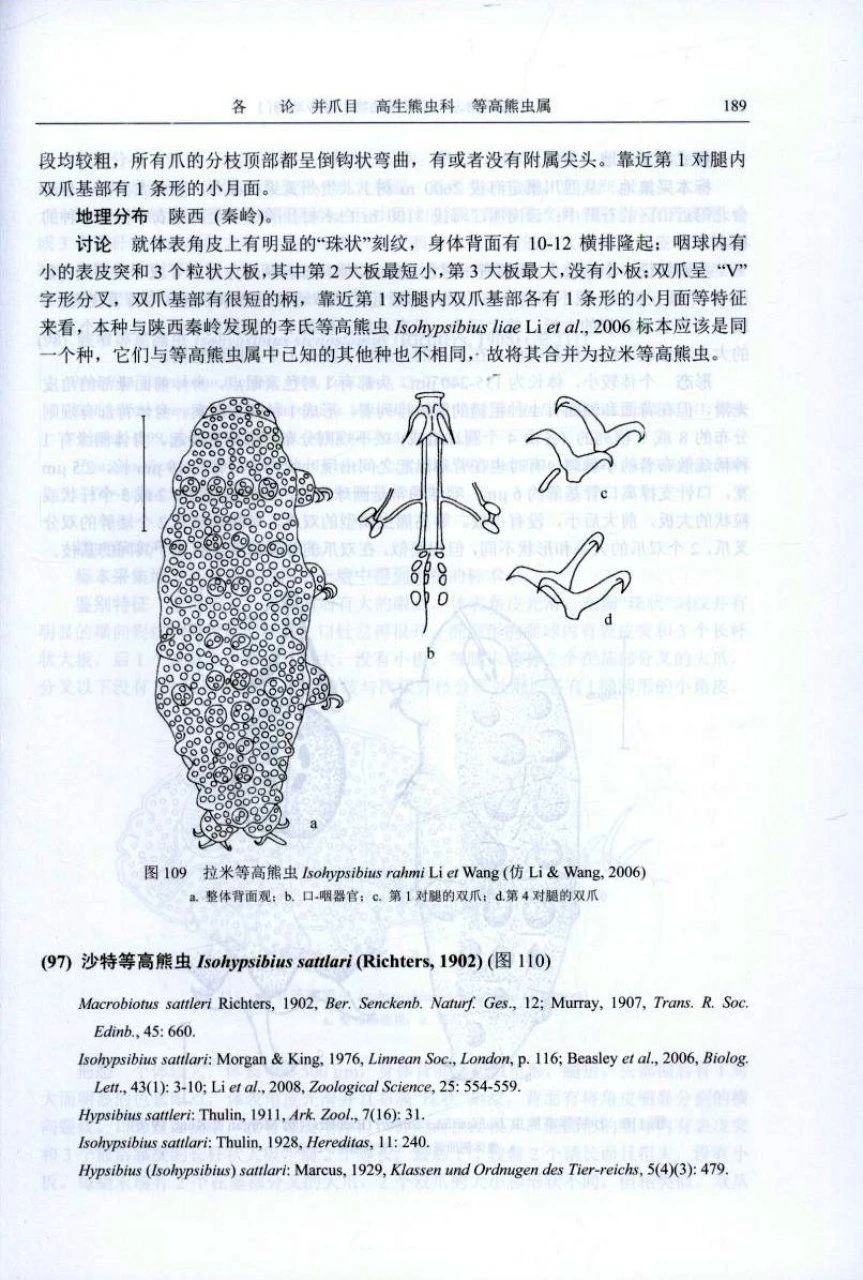 There are a total of 2 classes, 3 orders, 5 families, 22 genera and 118 species and subspecies of Tardigrada recorded in this book. A entire list of the systematics including a series of taxonomic keys of all taxa and some notes of classes, orders and families are given in English.