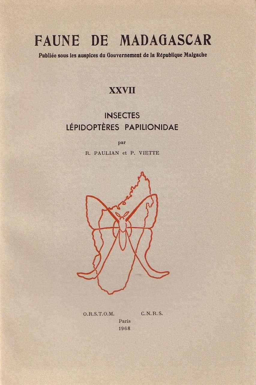 Volume 27 covers the large and colourful butterfly family Papilionidae or swallowtail butterflies. Plates show black-and-white photos of mounted specimens and prepared genitalia for identification purposes.