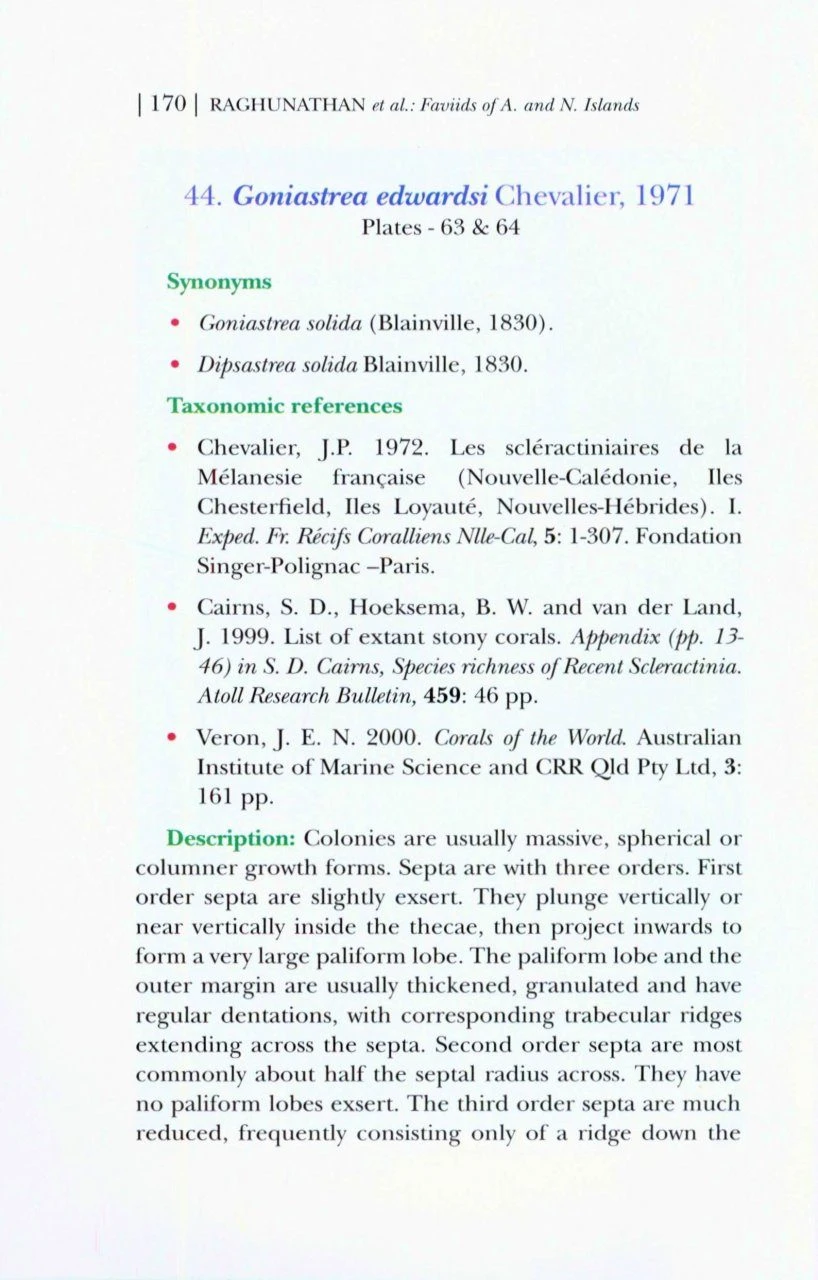 An extensive taxonomic work on the Faviid corals of the Andaman and Nicobar Islands, describing 99 species belonging to 18 genera.