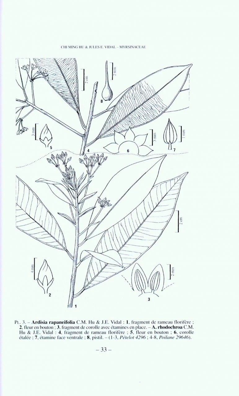 Volume 32 treats the family Myrsinacea, covering 8 genera and 144 species.