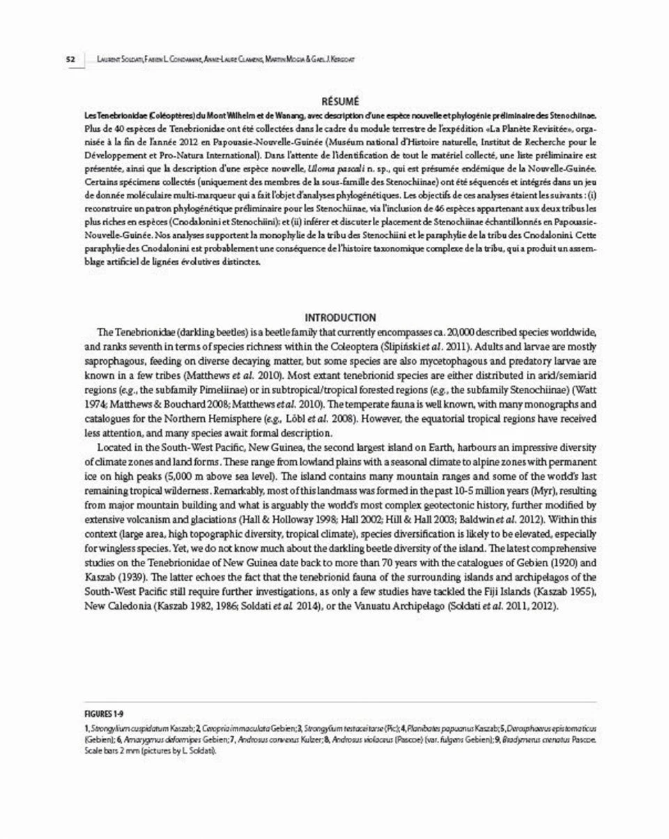 Papua New Guinea possesses among the most remarkable ecosystems in the world in terms of plant species richness and marine biodiversity. During the biotic survey “Our Planet Reviewed – Papua New Guinea 2012-2013” more than two hundred people have explored these ecosystems, from the bottom of the Bismarck Sea to the summit of Mount Wilhelm, its highest peak. Assisted by both local communities and local parataxonomists, researchers, technicians, amateur naturalists and students from 21 different countries have gathered a large amount of specimens and data to attempt answering fundamental questions such as how many living species inhabit our planet or how much biodiversity is generated by elevational turnover of arthropod species. The Mémoires du Muséum publish the first major outcomes of the terrestrial part of the expedition, focusing on the insect fauna of Mount Wilhelm. Insects of Mount Wilhelm comprises 20 contributions dealing with diverse groups of insects, with the description of 144 species and 6 genera new to science.