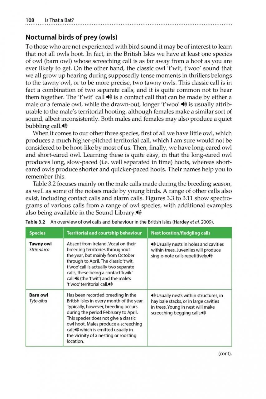 The first chapter caters for the subject overall, including suggestions from the author as to why the subject matter is of value. It also discusses bat-related calls (including social calls) with a view to offering comparisons against the other sources of sound discussed in separate chapters. Continuing through Is That a Bat?, there are chapters covering the following: small mammals; amphibians; insects; birds; electrical/mechanical noise; and other noise/nuisances. Within each chapter there are sub-sections about bat detector recorded sound, sound by ear, as well as advice on techniques and methods to reduce or increase the likelihood of recording other sounds. Is That a Bat? concludes with associated appendices, including a ‘Problem Solving Key’ to help those encountering an unfamiliar sound to narrow it down to the likely source.
