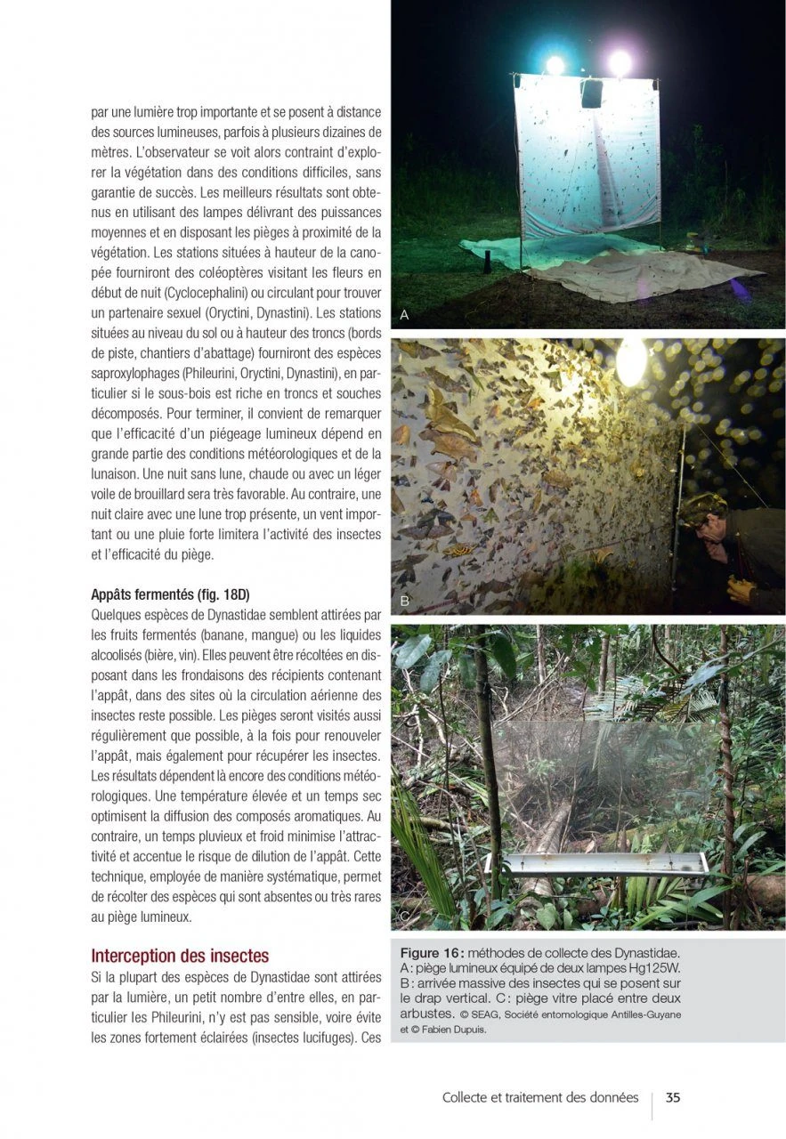 Les Dynastidae constituent un groupe de coléoptères très spectaculaires dont la diversité est extrêmement importante dans les forêts tropicales humides. En Guyane on trouve plus de 140 espèces dont certaines font partie des plus gros insectes du monde. Paradoxalement, leur biologie ou leur écologie est très mal connue et il est actuellement impossible de dresser un inventaire complet des espèces présentes en Amérique du Sud. Pour combler cette lacune, les auteurs ont collecté pendant plus de cinq années toutes les informations disponibles afin de constituer une base de données fiable et actuelle. Un travail important de révision sur le plan taxonomique et systématique a été réalisé pour dresser une liste précise des espèces présentes en Guyane. Enfin une étroite collaboration avec un réseau d’entomologistes locaux a permis de recueillir des informations biologiques et écologiques qui font progresser de manière significative la connaissance du groupe (distribution, saisonnalité, écologie larvaire, etc.).