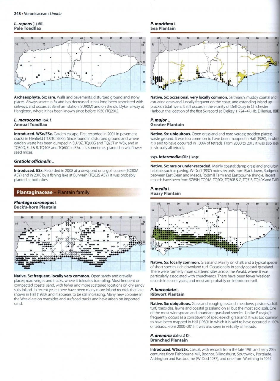 Sussex, with its long coastline, chalk downs, rivers, woods and heaths, possesses an unusual diversity of habitats. Long known for the richness of its flora, many species are otherwise rare in southeast England, others reach the northern edge of their European range in the county and an ever-increasing number of new arrivals are becoming established.