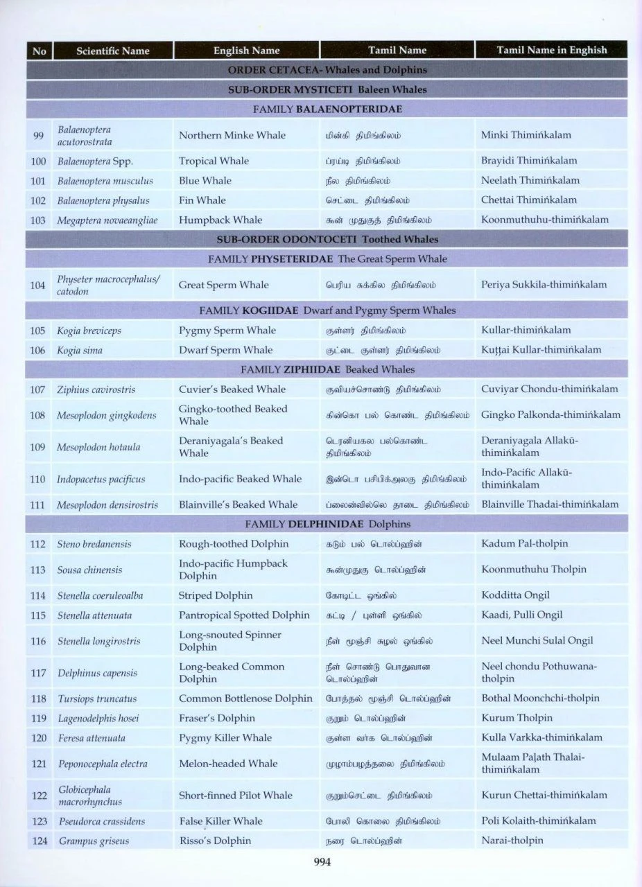 Sri Lanka’s Mammals Names: Scientific, English, and Tamil Equivalents 988