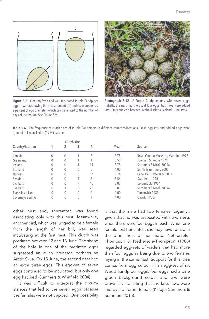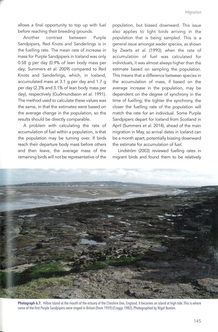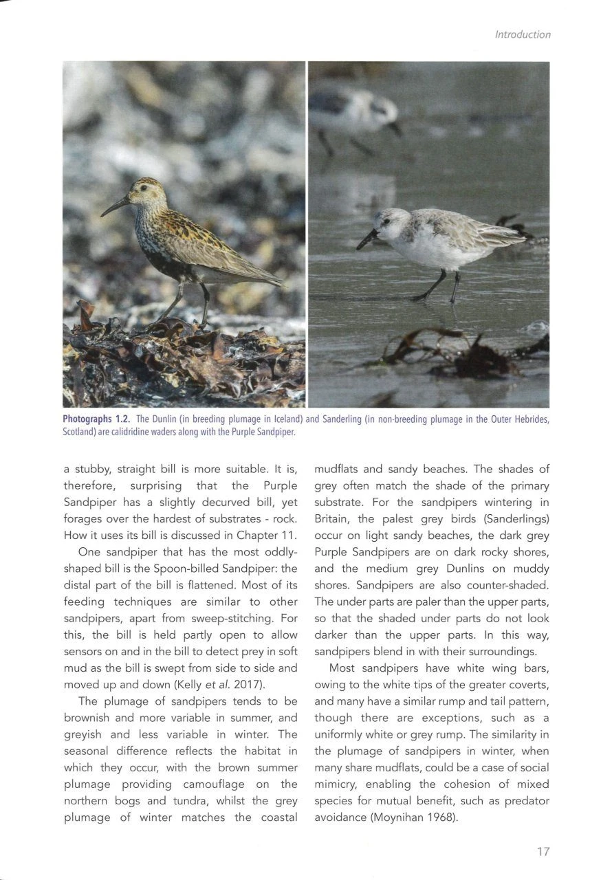 Purple Sandpipers breed as far north as the polar deserts of Franz Josef Land, south to the mountains of Norway and Scotland. Each population has a different migration pattern after breeding. Those that breed in Iceland remain in Iceland for winter, whereas birds that breed in Arctic Canada cross the Atlantic in a 2.5-day flight during November and December to winter in Western Europe. For much of the year, they live on the exposed rocky seashores of the North Atlantic, feeding on periwinkles and mussels. Some even live in the gloom of the endless night, north of the Arctic Circle, contrasting with other sandpiper species that spend the winter in the tropics. The book draws comparisons with other waders, showing how Purple Sandpipers have adapted to their unusual way of life, and how the evolution of sexual size dimorphism has had a knock-on effect on the diet, juvenile survival and sex ratio. The book also describes the status of the Purple Sandpipers populations, which are declining. The steady warming of the Arctic is thought to be having a negative effect on sandpiper productivity, although it is not known if this is because of a decline in the food supply or an increase in predation.