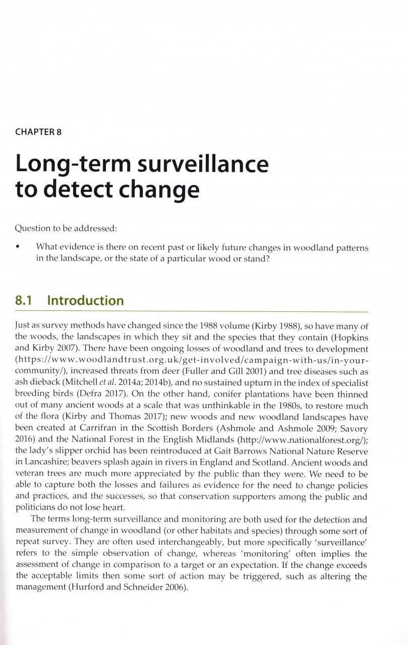 There is not one method that will be right for all situations and needs, so the methods discussed range from what one can find out on-line, to what can be seen on a general walk round a wood, to the insights that can come from more detailed survey and monitoring approaches. Fast evolving techniques such as eDNA surveys and the use of LiDAR are touched on.
